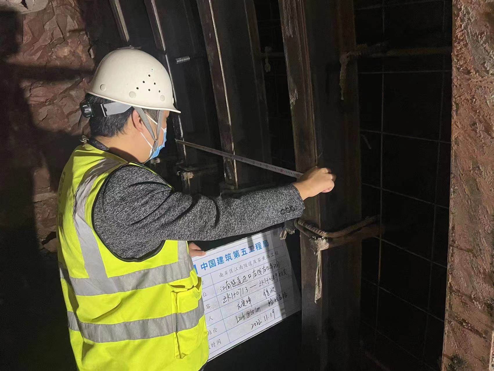 監(jiān)理人員龍定烽檢查拱架間距