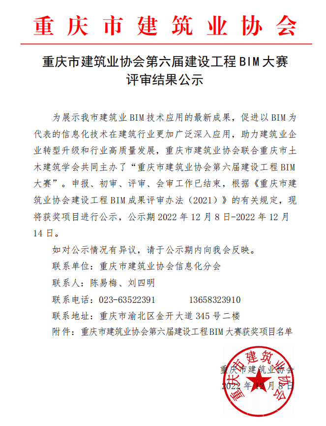 近日,由重慶市建筑業(yè)協(xié)會(huì)聯(lián)合重慶市土木建筑學(xué)會(huì)共同主辦的“重慶市建筑業(yè)協(xié)會(huì)第六屆建設(shè)工程BIM大賽”評(píng)審結(jié)果揭曉,憑借BIM技術(shù)與全過程造價(jià)咨詢的創(chuàng)新融合,同致誠(chéng)工程咨詢有限公司參與的“重慶龍興足球場(chǎng)BIM全過程造價(jià)管理項(xiàng)目”榮獲綜合BIM技術(shù)應(yīng)用二等獎(jiǎng)。
