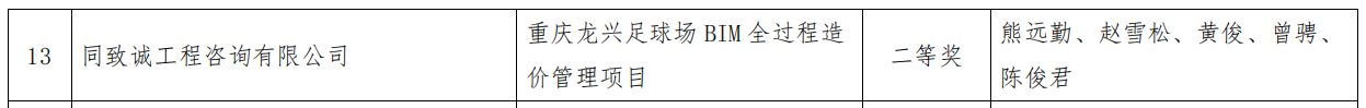 “重慶龍興足球場(chǎng)BIM全過程造價(jià)管理項(xiàng)目”榮獲綜合BIM技術(shù)應(yīng)用二等獎(jiǎng)