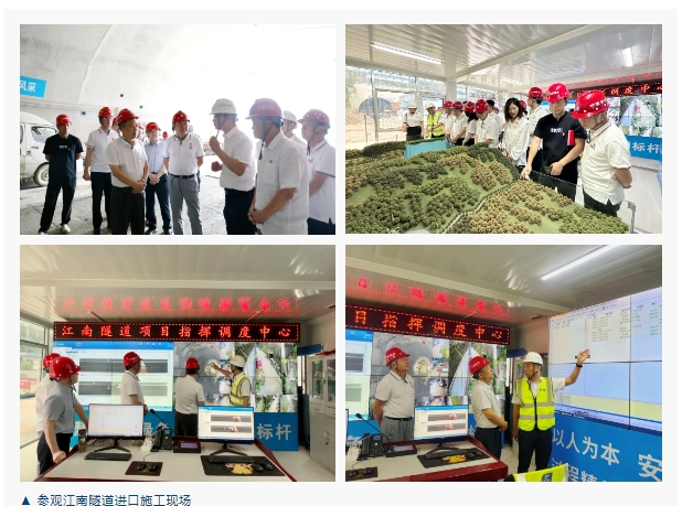 活動伊始,中建五局江南隧道項目黨支部書記、項目執行經理張程帶領大家參觀了江南隧道進口施工現場并詳細匯報了項目基本情況、現場進展、項目重難點、施工工藝及項目建設意義。