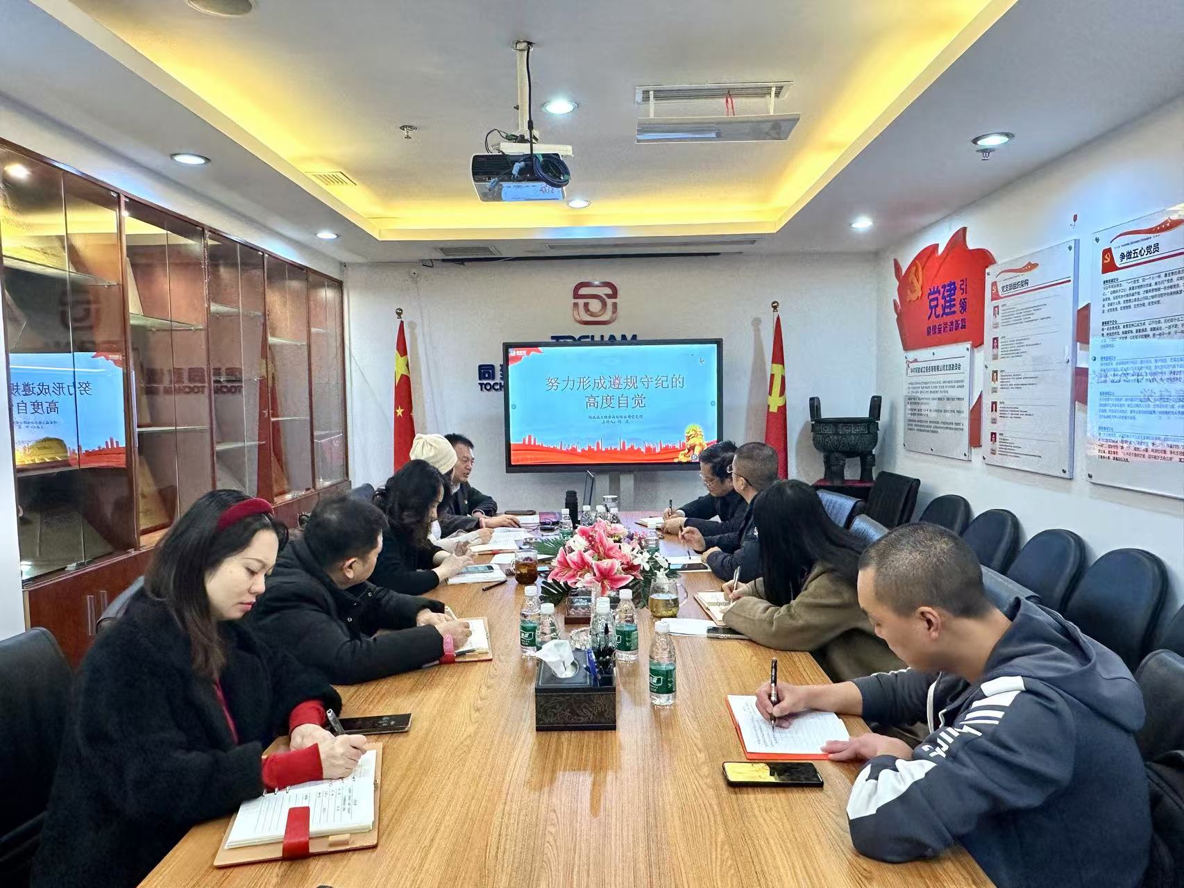 隨后,黨支部書記劉星帶領(lǐng)大家學(xué)習(xí)中共中央政治局召開的會(huì)議—— “分析研究2025年經(jīng)濟(jì)工作 研究部署黨風(fēng)廉政建設(shè)和反腐敗工作”的會(huì)議精神,并圍繞“努力形成遵規(guī)守紀(jì)的高度自覺”主題,為大家講授紀(jì)律教育整頓專題黨課。