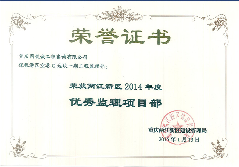 2014年度優秀監理項目部-保稅港區空港G地塊一期