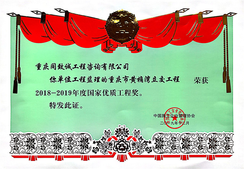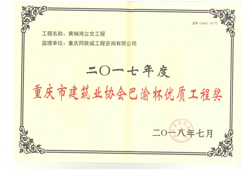 2017年度重慶巴渝杯優質工程獎-黃角灣立交