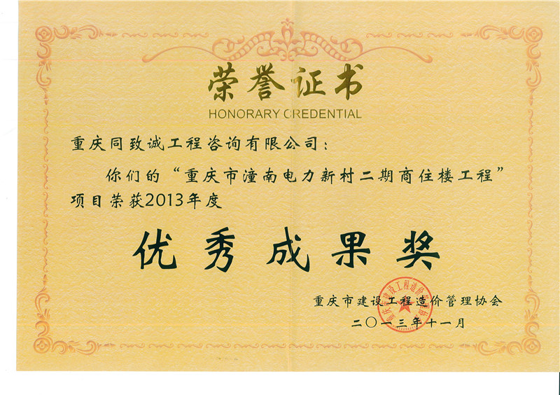 2013潼南電力新村商住樓優秀成果獎