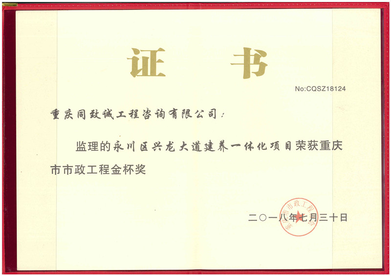 2018年重慶市政工程金杯獎-永川區興龍大道建養一體化項目