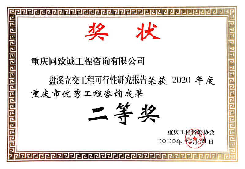 2020年盤溪立交可研優秀成果獎二等獎