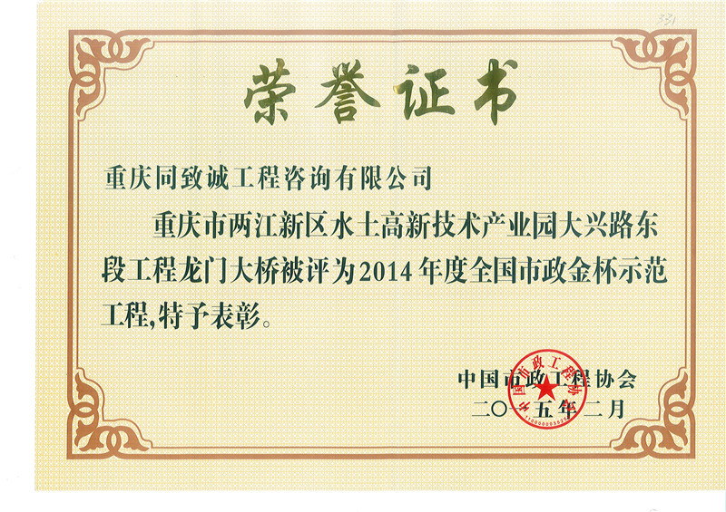 龍門大橋2014年度全國市政金杯獎