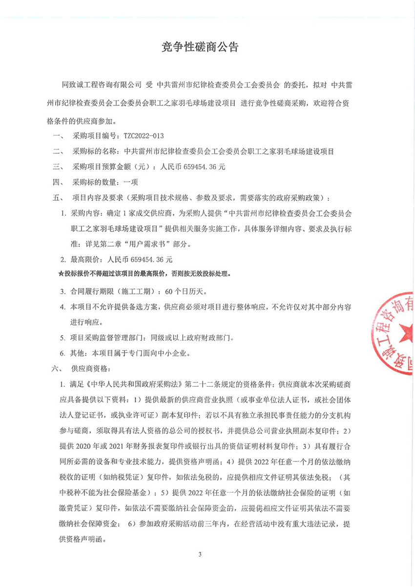 中共雷州市紀律檢查委員會工會委員會職工之家羽毛球場建設項目