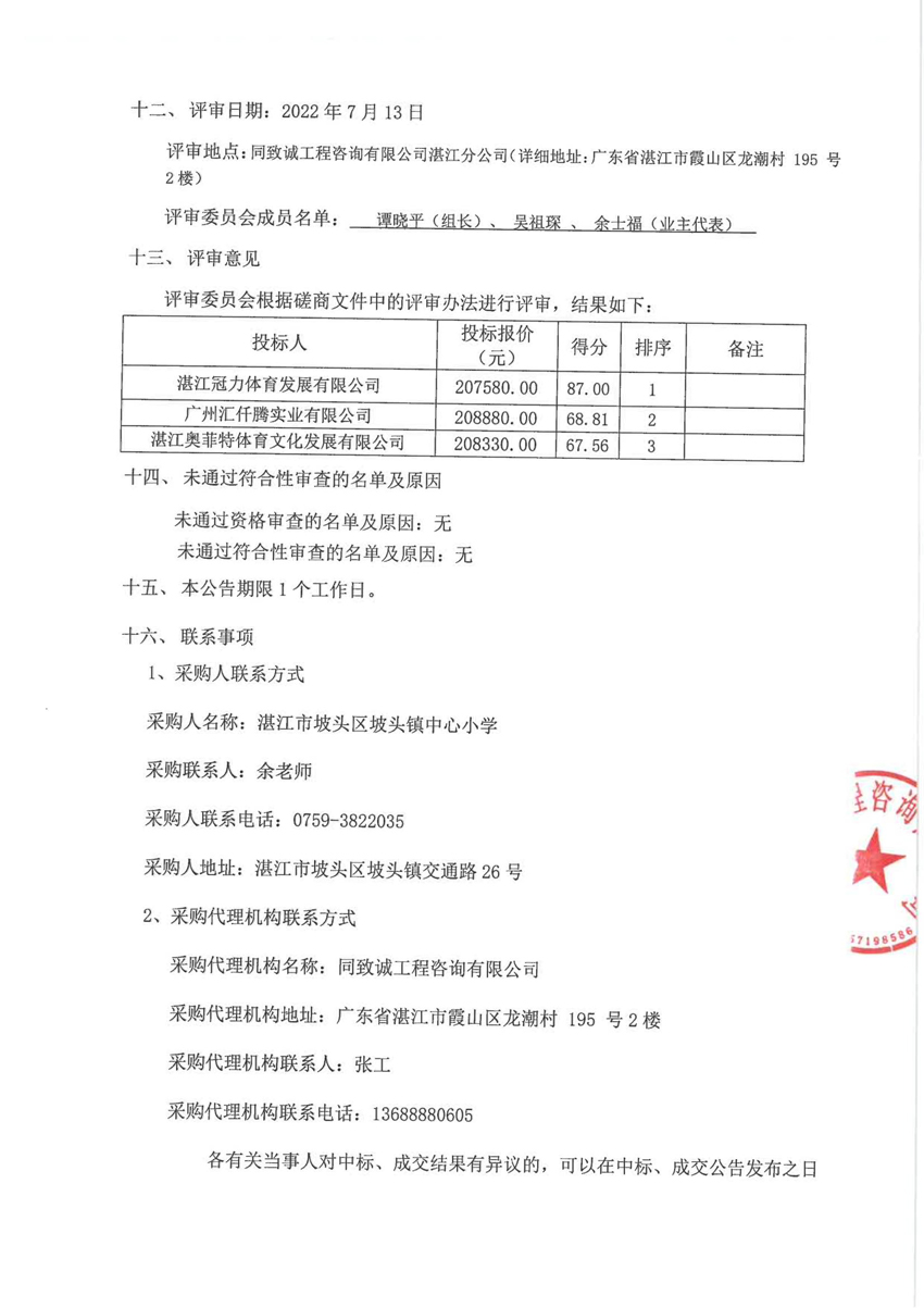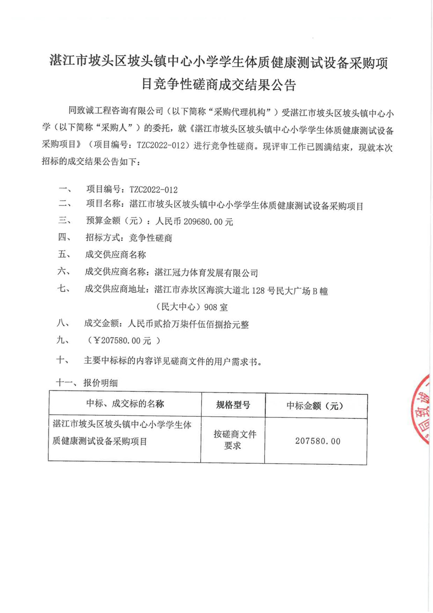 湛江市披頭區披頭鎮中心小學學生體質健康測試設備采購項目