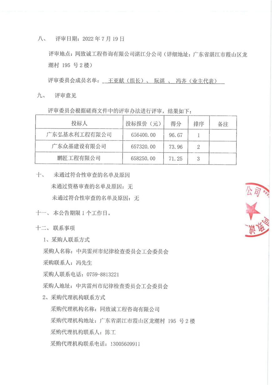 中共雷州市紀律檢查委員會工會委員會職工之家羽毛球場建設項目