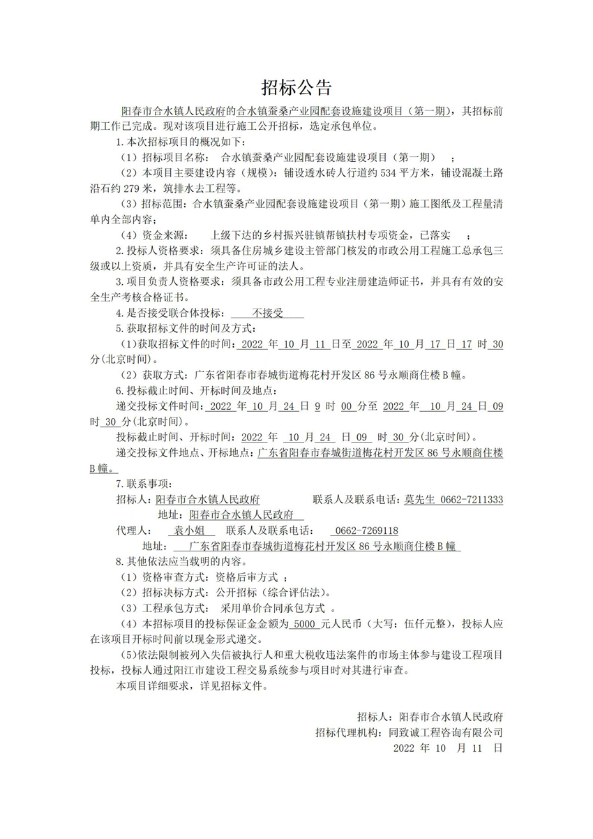 合水鎮蠶桑產業園配套設施建設項目(第一期)