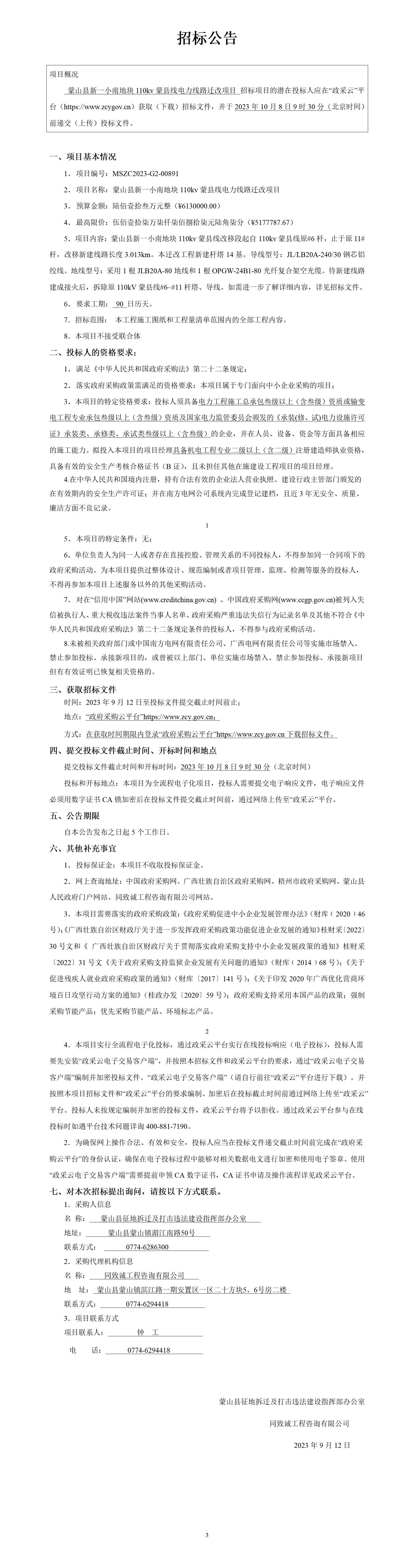 蒙山縣新一小南地塊110kv蒙縣線電力線路遷改項目